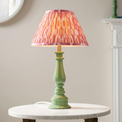 Myrtle Green Table Lamp & Ikat 30cm Coral Pink Shade