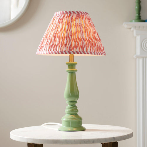 Myrtle Green Table Lamp & Ripple 30cm Coral Pink Shade