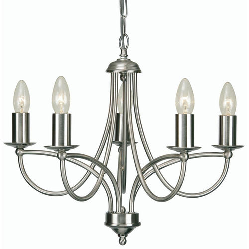 The Loop Lighting range by Oaks Lighting is a simple and stylish pendant ceiling light available in 3 finishes. This 5-light fitting in an antique chrome finish is also available in a 3-light model.