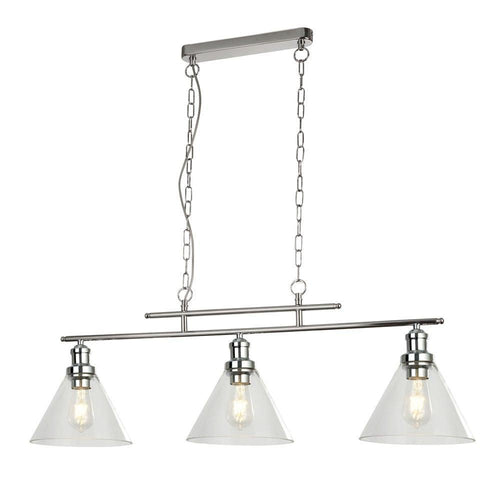 Pyramid 3 Light Chrome Ceiling Pendant - Clear Glass Shades