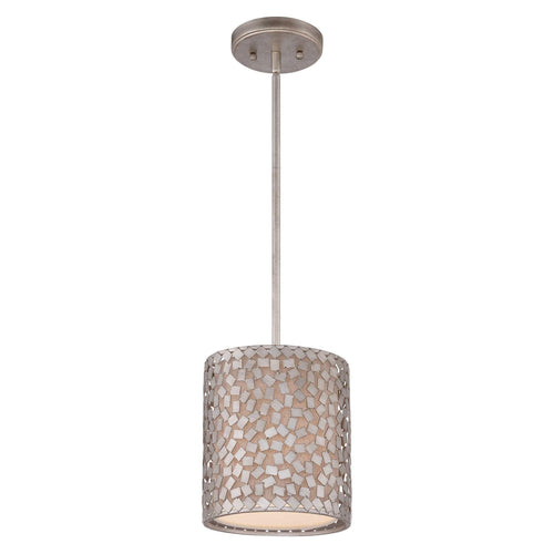 The Quoizel Confetti 1 Light Mini Old Silver Ceiling Pendant features a stunning mosaic design that adds a touch of elegance and sophistication to any space. Its intricate pattern and sleek finish make it a versatile choice, perfect for enhancing the ambiance of hallways, living rooms, or bedrooms. This pendant light is designed to be compatible with LED lamp bulbs, ensuring energy efficiency and long-lasting illumination. Its contemporary style seamlessly blends with various interior decors, making it an ideal addition to modern homes.