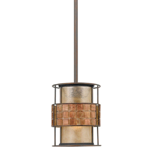 The Quoizel Mini Copper Pendant Ceiling Light features a sophisticated design with a cylindrical shape, combining a warm, amber-toned glass shade with a rustic metal frame. Its elegant and timeless aesthetic makes it a perfect addition to any hallway, living room, or bedroom, providing a cozy and inviting ambiance. This versatile fixture is compatible with LED lamp bulbs, ensuring energy efficiency and long-lasting illumination. Its unique blend of materials and textures adds a touch of classic charm to any interior space, making it an ideal choice for those looking to enhance their home decor with a stylish lighting solution.