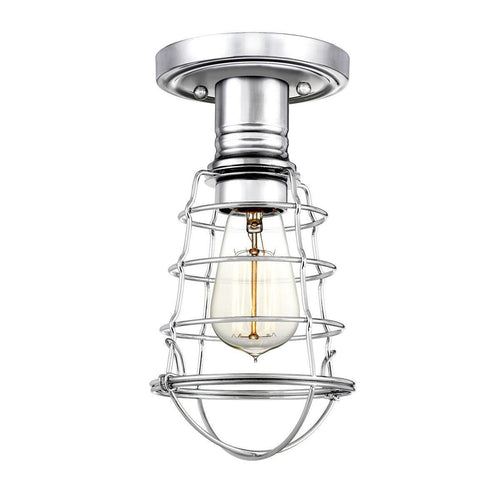The Mixon is an industrial cage style ceiling flush light. it's no nonsense simplicity, compliments any space that is trying to achieve a spartan clean feel. Finished in Polished Chrome, this product is best shown with an Edison style lamp for a truly authentic look.