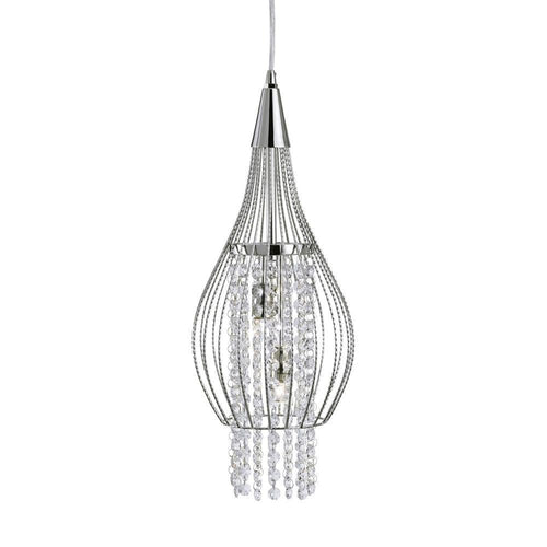 Rocket 2 Light Cage Frame Chrome & Crystal Ceiling Pendant