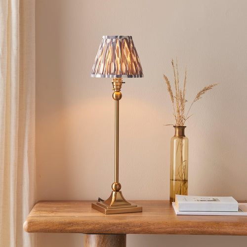 Illuminate your space with sophistication and style with our exquisite table light, designed to captivate and inspire. Featuring an authentic switched B22 lamp holder, this piece is elegantly finished in brushed aged brass, exuding timeless charm and luxury. The grey braided fabric flex adds a touch of modern elegance, seamlessly blending with any decor. Paired with our chic pearl grey 16cm Ikat shade, this table light is not just a source of illumination but a statement of refined taste. Perfectly crafted to accommodate LED lamp bulbs, it offers both energy efficiency and a warm, inviting glow. Transform your home into a haven of elegance and sophistication. Elevate your lighting experience today with this stunning table light.
