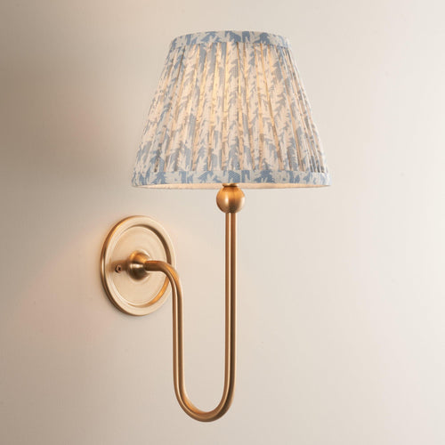 Santiago Long Line Brass Wall Light With 20cm Blue Leaf Shade