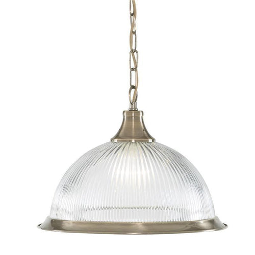 Searchlight American Diner Antique Brass Finish And Clear Ribbed Glass Pendant Ceiling Light 9369
