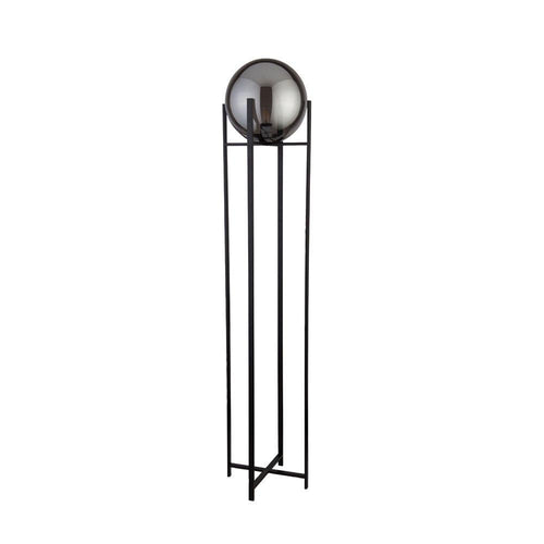 Searchlight Amsterdam Modern Black Floor Lamp Smoked Glass Shade