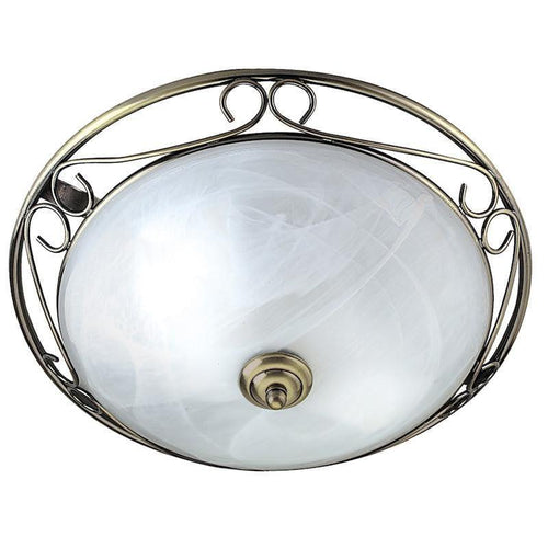 Searchlight Antique Brass Finish And Marble Glass Grecian Style Flush Ceiling Light 6436