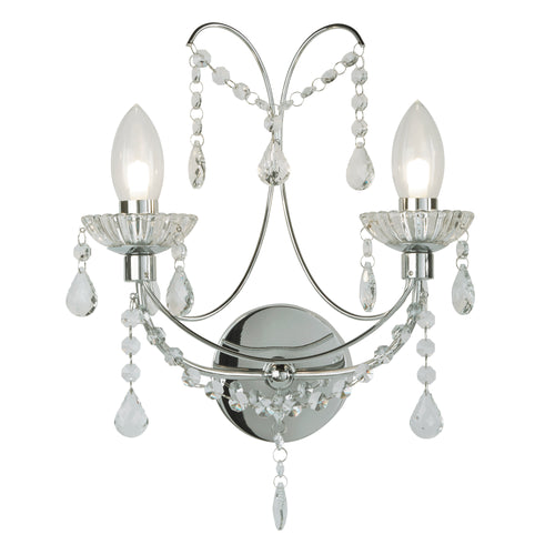 The Autumnn bathroom wall light will add instant glamour to any bathroom setting. The 2 lights sit in glass sconces within a chrome fitting adorned with crystal peices which will elavate any bathroom.