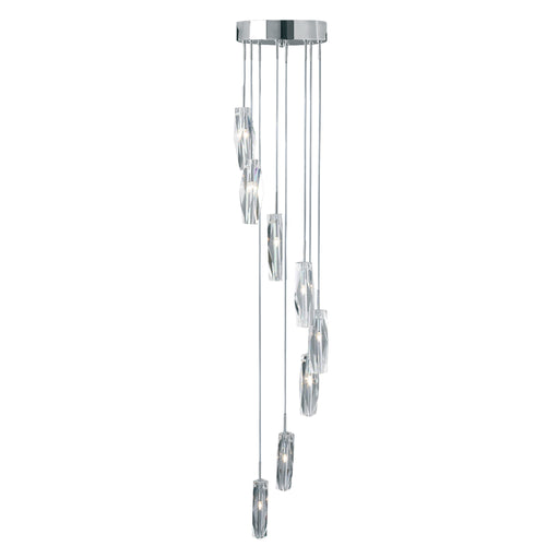 Searchlight Sculptured Ice Chrome & Glass Multi-Drop Pendant
