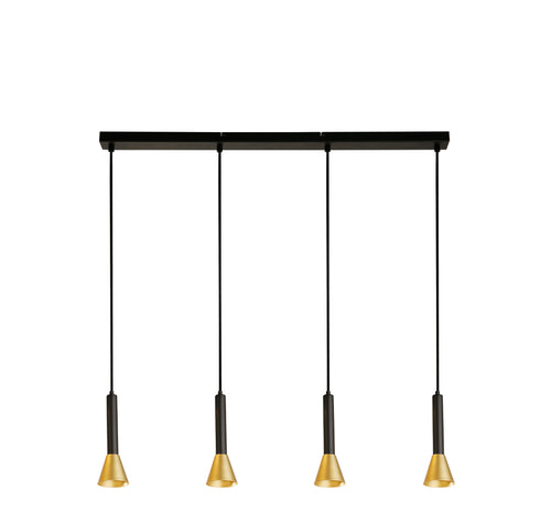 The Signal 4Lt Bar Pendant effortlessly combines style and functionality. Crafted from black and gold metal, this bar pendant features cone-shaped shades in a powder-coated satin finish, creating a sleek and elegant look. The height-adjustable design allows for customisation, making it suitable for various room sizes and ceiling heights. With directed light and efficient distribution, it provides focused illumination while minimising glare.