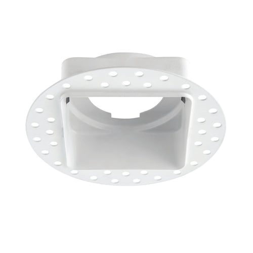 The square Trimless bezel accessory conceals the ShieldECO downlight for a clean, seamless finish. Designed to be plastered into the ceiling during the early stages of a build, allowing the ShieldECO to be fitted later.