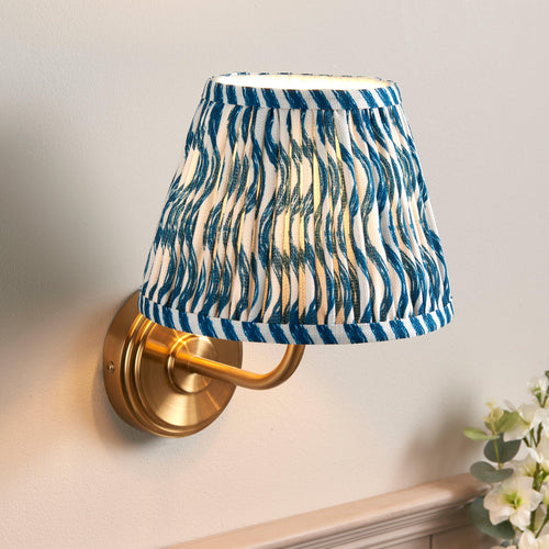 Introducing our timeless stepped wall light, featuring an elegantly curved arm finished in brushed aged brass. This sophisticated design is beautifully complemented by our striking 20cm Ripple shade in vibrant marlin blue, adding a pop of color and style to any space. Perfect for dining rooms, this wall light is part of our coordinated lighting range, allowing you to create a cohesive and inviting atmosphere throughout your home. Shop with confidence knowing that we offer secure delivery, easy returns, and a safe online shopping experience. Illuminate your space with elegance and style today!
