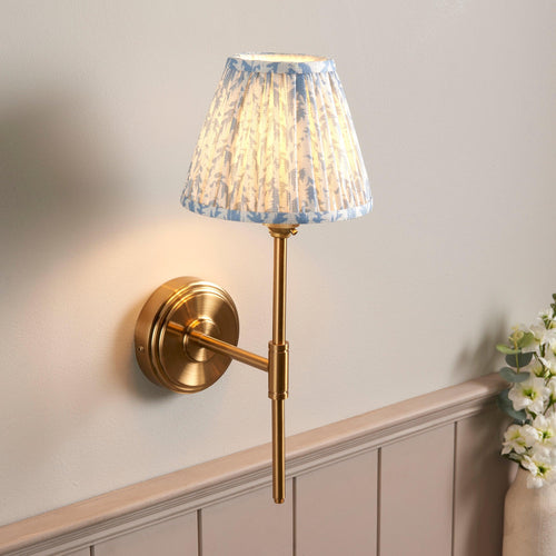 Step T Bar Brass Wall Light & Leaf 16cm Shell Bay Blue Shade