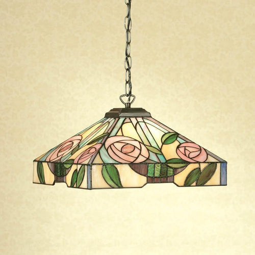 The Willow Tiffany Lighting range by Interiors 1900 features lovely soft pastel tones combined with the stylish rose inspired by Charles Renee Mackintosh. This Large Tiffany Ceiling Pendant Light is fully adjustable allowing you to fit it perfectly into your home. The Willow Tiffany range includes a choice of alternative ceiling lights, as well as wall lights, and table and floor lamps.