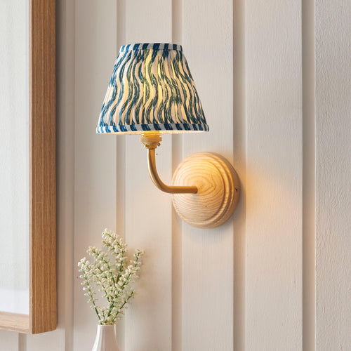 Wood Arc Wall Light & Ripple 16cm Marlin Blue Shade