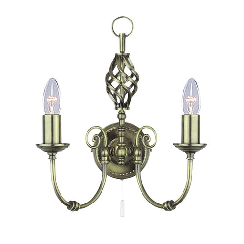 Zanzibar 2 Light Antique Brass Wall Light - Pull Switch