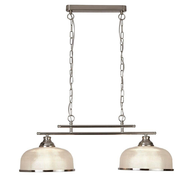 Bistro II 3 Light Silver Bar Pendant - Holophane Glass ShadesSearchlight Lighting