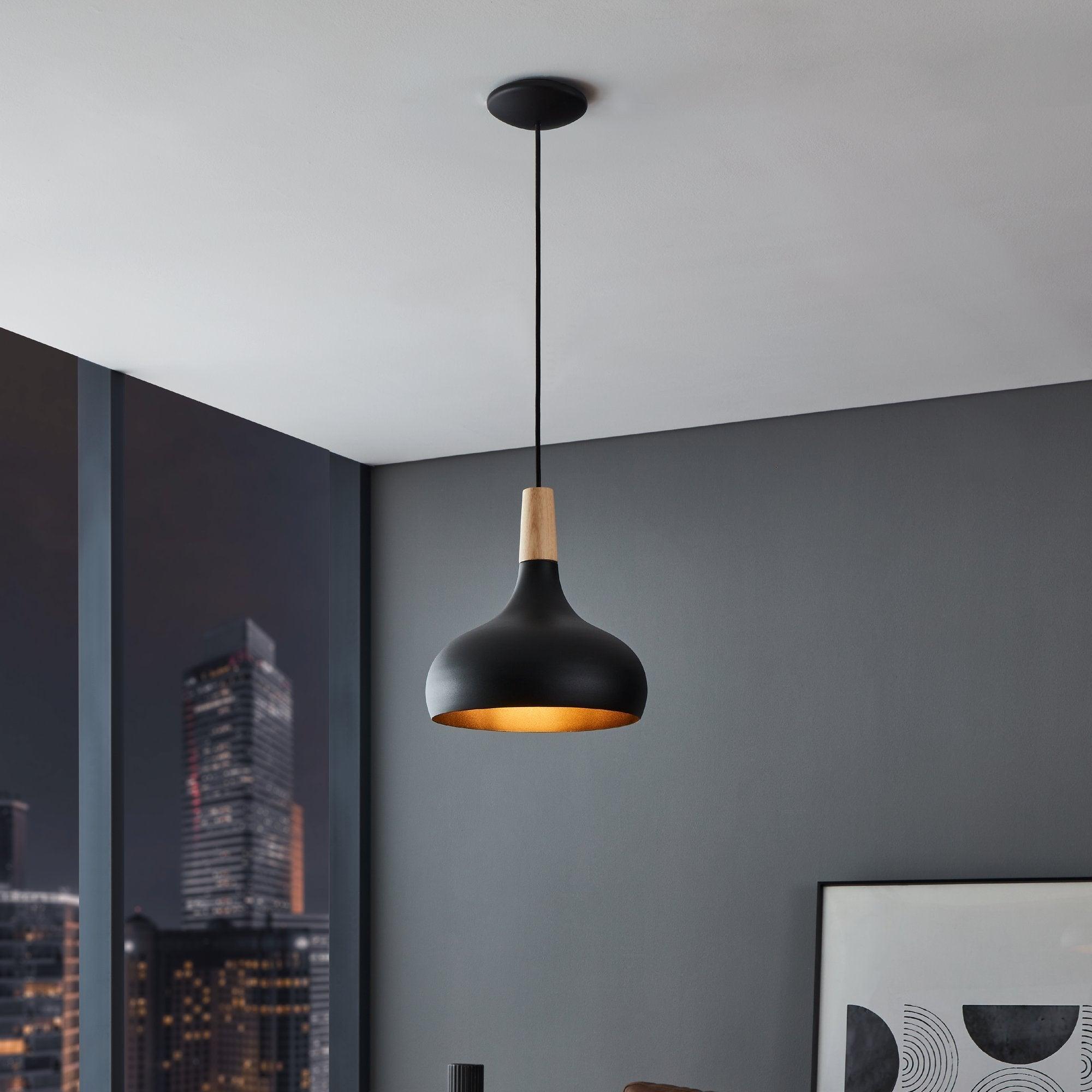 Colman Gloss Black & Gold Leaf Finish Pendant Ceiling LightEndon Lighting
