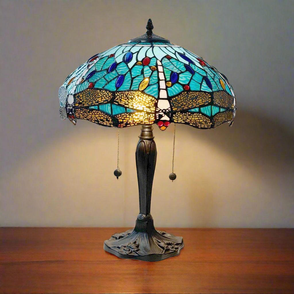 The Dragonfly Tiffany Lamp is possible the most iconic design available today. Beautifully crafted with hand-cut stained glass, these lamps will provide light, style and beauty to your home. All our Tiffany Lamps can be used with LED bulbs. Available in blue, beige, orange, green and red, these Tiffany lamps are timeless classics.