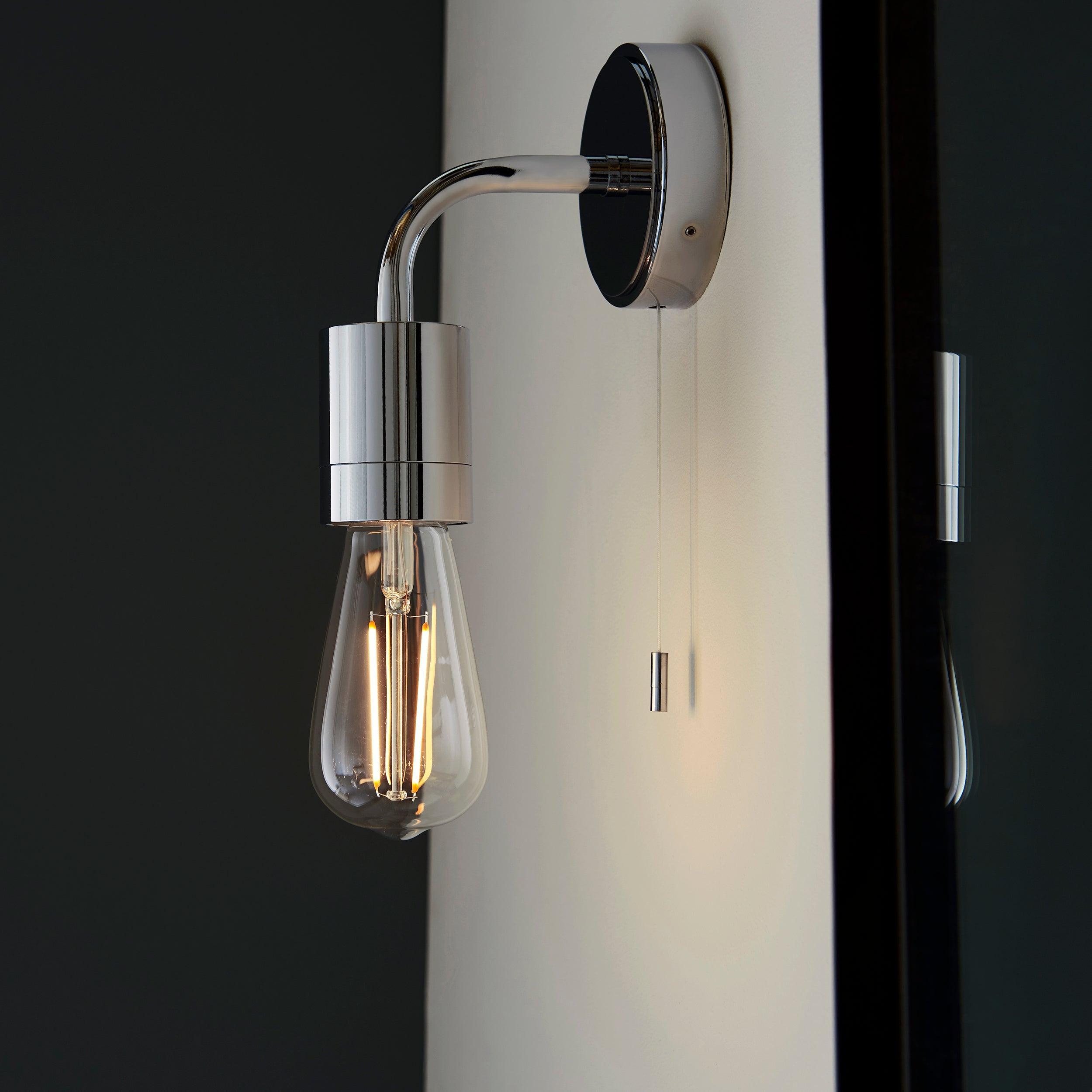 Boscombe Chrome Fisherman Bathroom Wall Light - Pull CordEndon Lighting