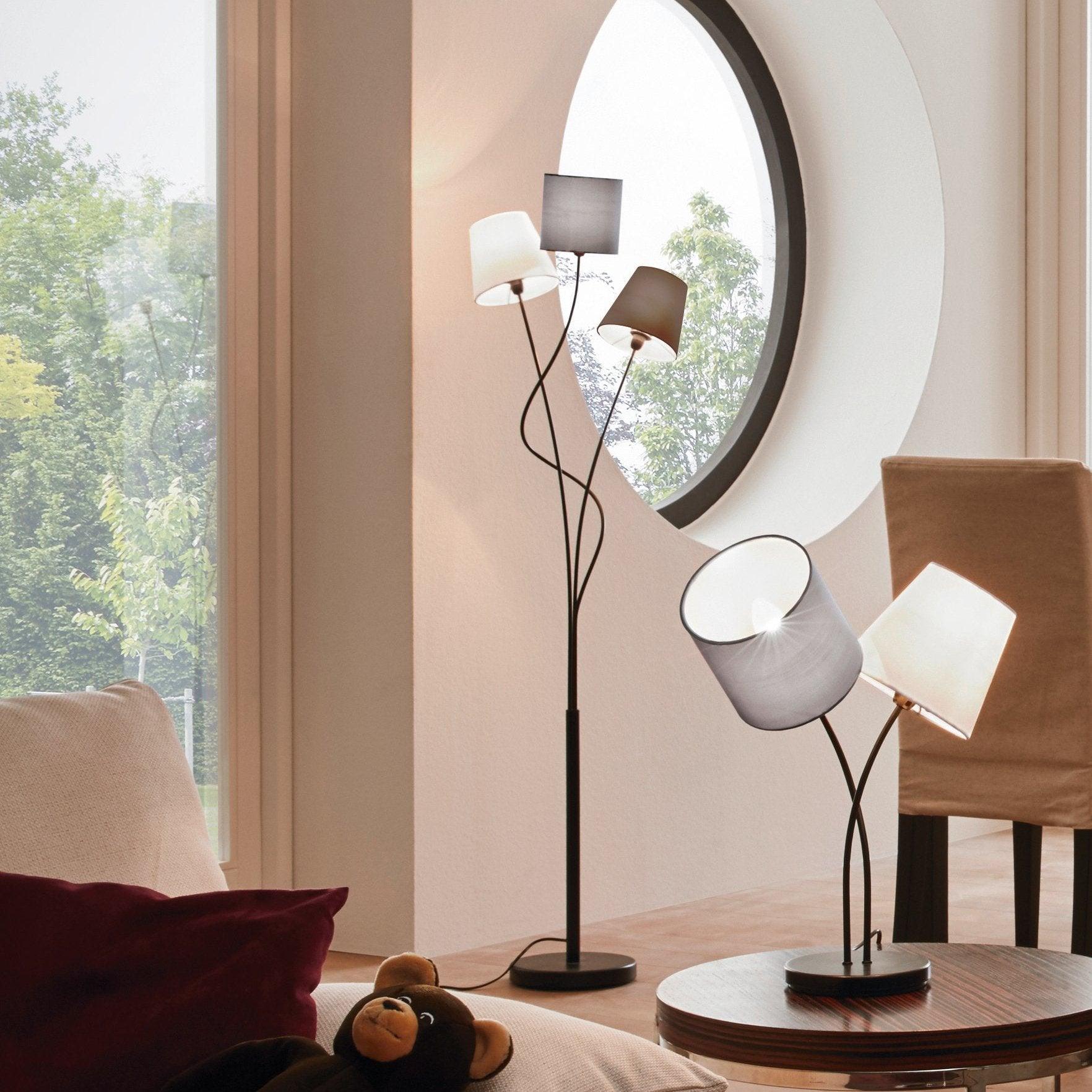 Lille Antique Black 1 Light Floor Lamp Linen ShadeEndon Lighting