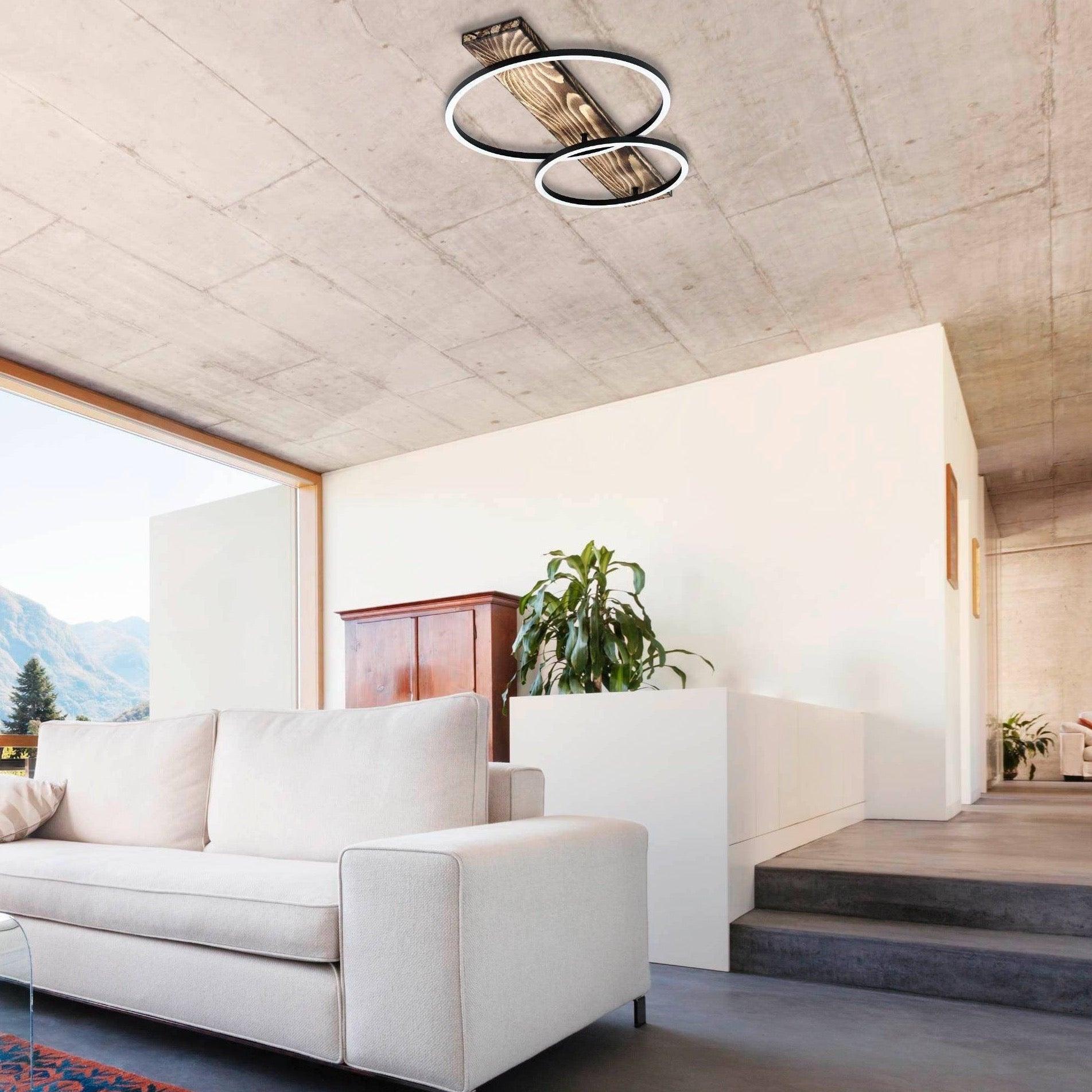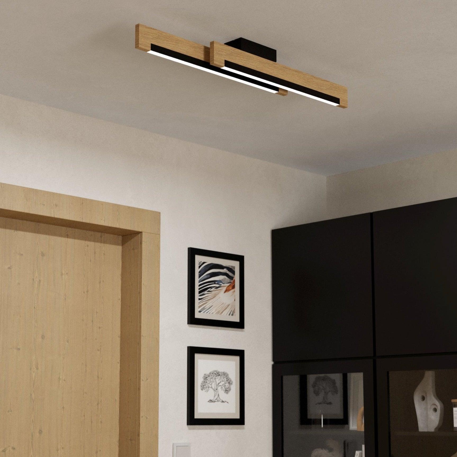 Feiss Allier Oak & Iron Flush Ceiling LightElstead Lighting