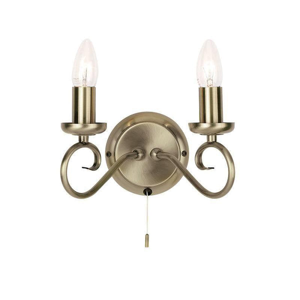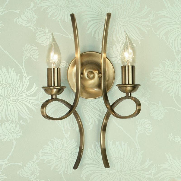 Traditional Wall Lights - Bernice Antique Brass Finish Twin Arm Wall Light 2030-2AN front view