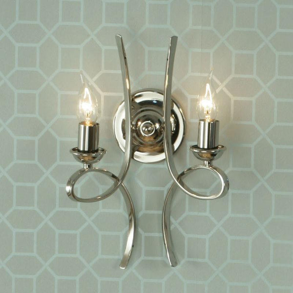 Traditional Wall Lights - Boyer chrome Finish Double Wall Light Left Prominent BOYER-2WBCH-L close up