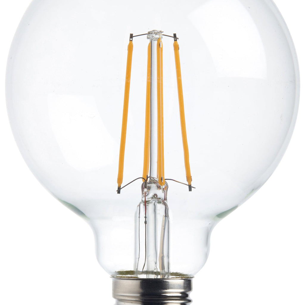 Filament lamps are the latest in LED technology. Designed to look like the original incandescent lamps, offering all the advantages of LED, such as low running costs, these are the ideal lamp replacement for all decorative light fittings. This is a dimmable 7W LED lamp that has a 2700K colour temperature.
