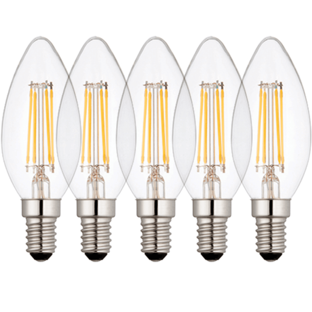 5 x E14 LED Dimmable Lamp/Bulb Candle Filament 4W (25W Equivalent)