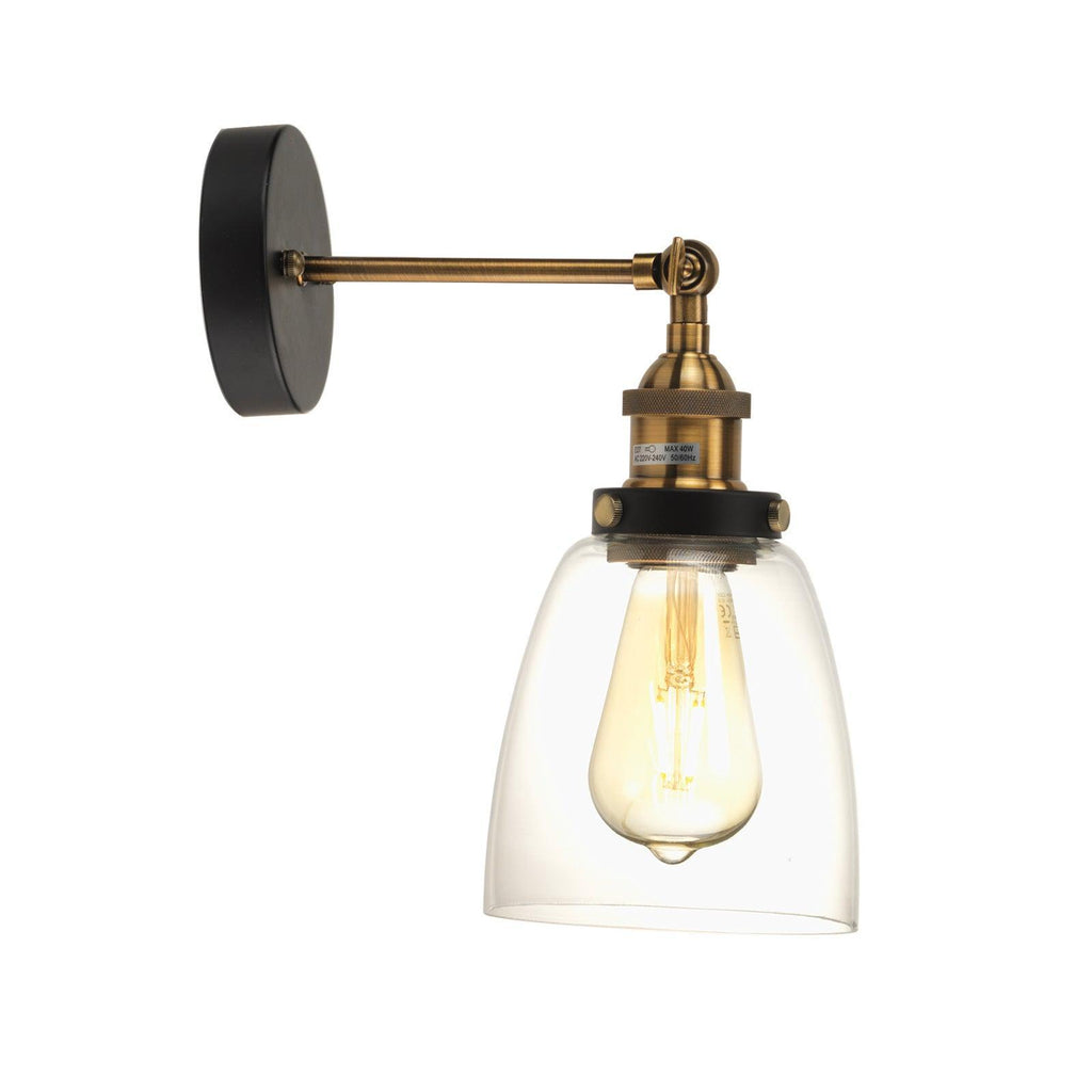 Aken Black & Gold Adjustable Wall Light - Glass Shade