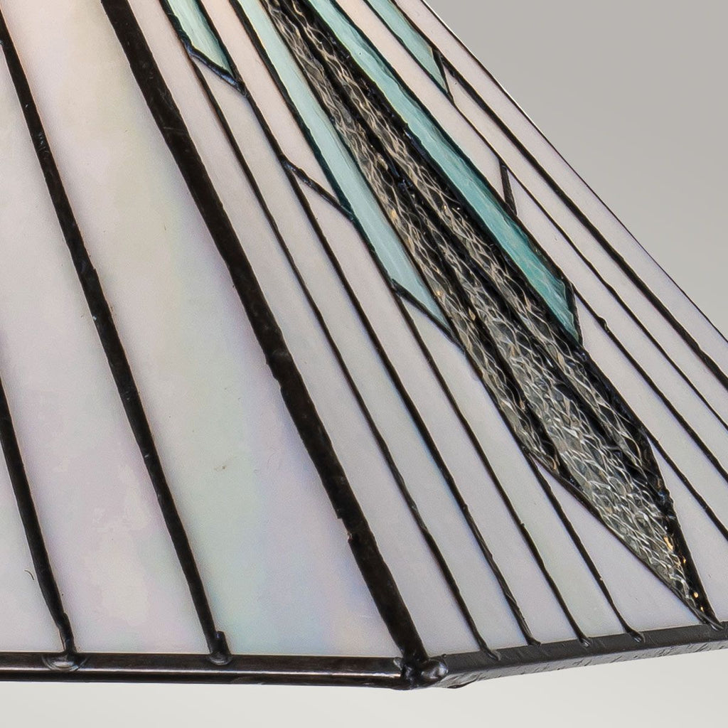 Experience the perfect blend of modern simplicity and timeless elegance with the Alderley Large Tiffany Table Lamp. Defined by its precise straight lines and sophisticated colour palette, this lamp brings a fresh perspective to classic Tiffany-style art glass lighting. When illuminated, the blue panels radiate a stunning aqua hue, while the textured glass sparkles beautifully, creating a captivating focal point in any room. Finished in a luxurious Vintage Bronze, the metal accents showcase classic Art Deco influences for a truly refined look. Shop with confidence from the UK’s leading lighting specialists and enjoy free 90-day UK returns on your purchase.| Height | 50.4cm/19.8" |