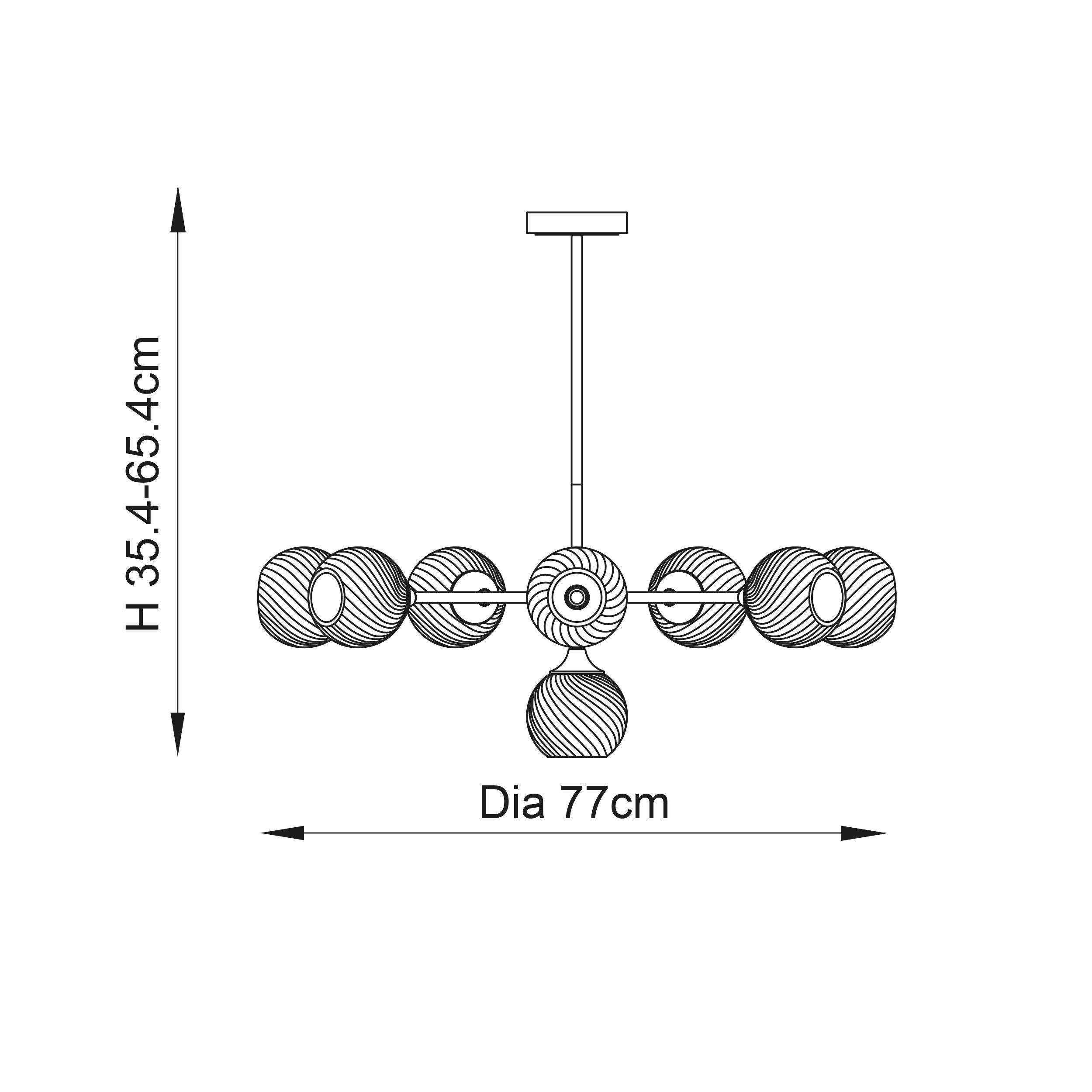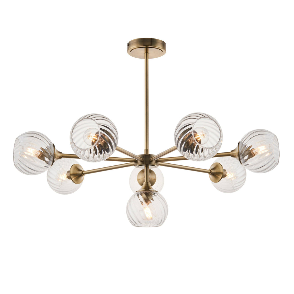 Twisted Glass Shades: Each of the eight shades is meticulously crafted, featuring a twist design that not only captivates the eye but also diffuses light beautifully throughout your space.