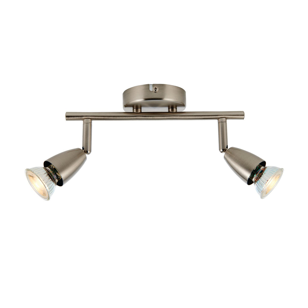 A simple twin spotlight bar from the Amalfi range finished in a satin nickel plate. Fully adjustable so light can be directed exactly where you need it. Suitable for commercial and domestic use. Matching items and different colour options available.| Projection | 15.5cm/6.1" |