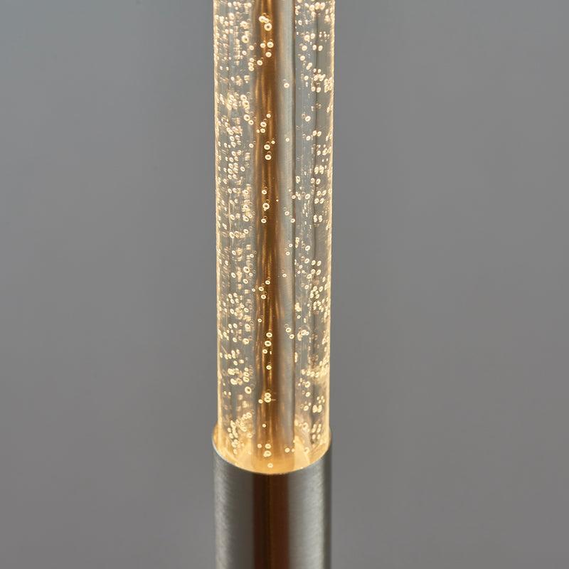 The central column on this attractive floor lamp is lit by an intergal LED light, under the shade you will need 1 x E27 LED lamp bulb, you can add this when you add to basket.