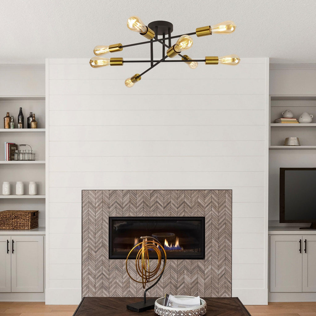 Armstrong 8 Light Black And Satin Brass Ceiling Light Searchlight