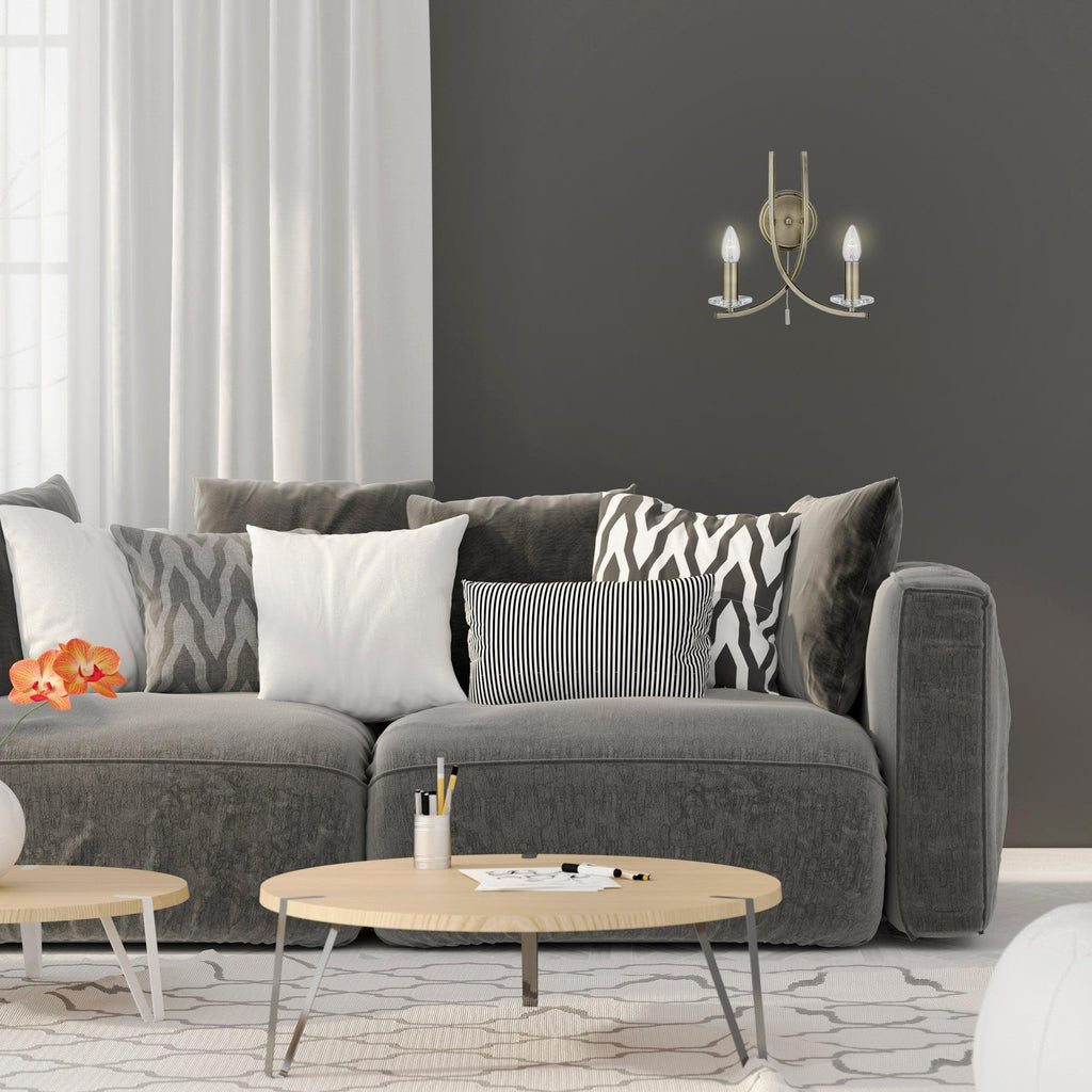 Discover classic elegance with the Ascona 2 Light Antique Brass Wall Light. Its beautiful brass finish complemented by crystal sconces and matched with ceiling lights means you can bring timeless sophistication to any space. Choose dimmable low energy LED bulbs to make it a statement piece in your home. What will your walls say?