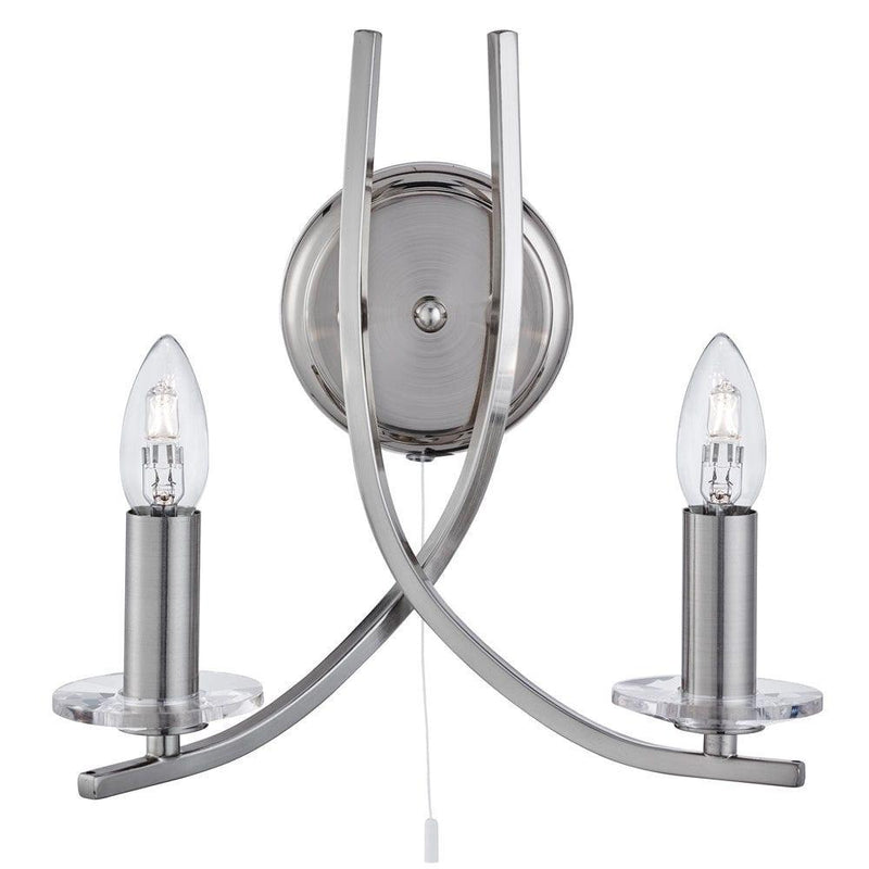 Ascona 2 Lt Satin Silver Wall Light With Clear Glass Sconces