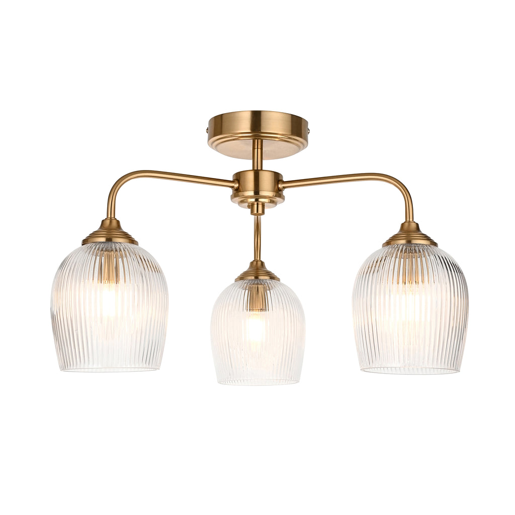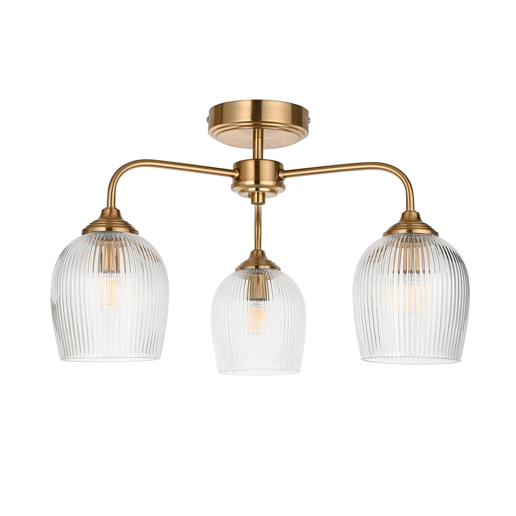 Ashcroft Brass 3 Light Brass Semi-Flush - Ribbed Glass Shades