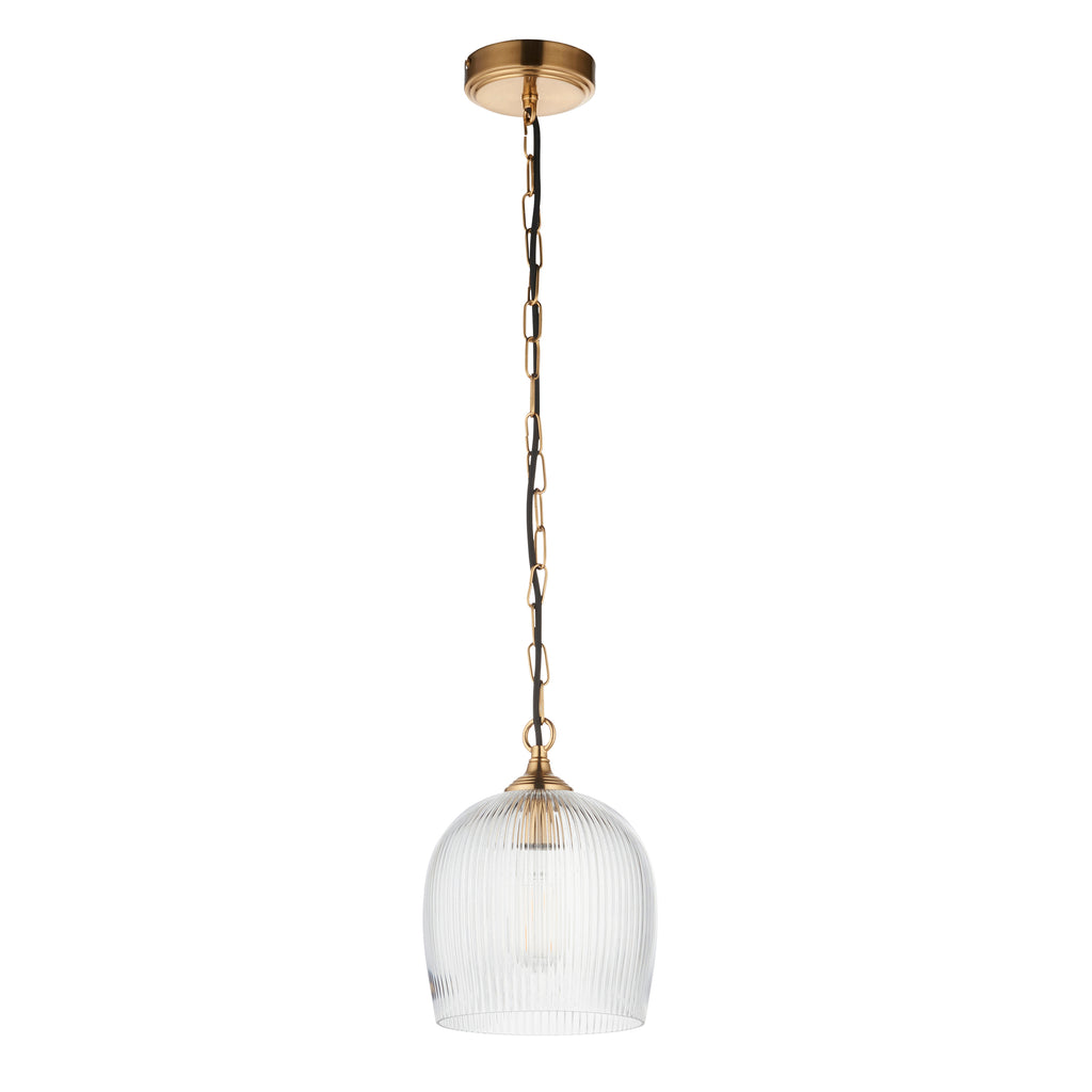 Ashcroft Ribbed Glass Shade Brass Pendant