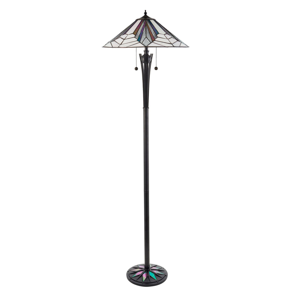 The Astoria Tiffany range by Interiors 1900 is a bright, crisp and stylish Art Deco range that fused some clear dimpled, plain white, and iridescent art glass. The deep blue trimming will change colour when you walk around this lamp so will always provide something visually interesting in your home. This Tiffany Floor Light will look stylish as well as providing a fantastic source of light in your home. The Astoria Tiffany Lighting range also includes a variety of ceiling lights, as well as wall lights and table lamps.
