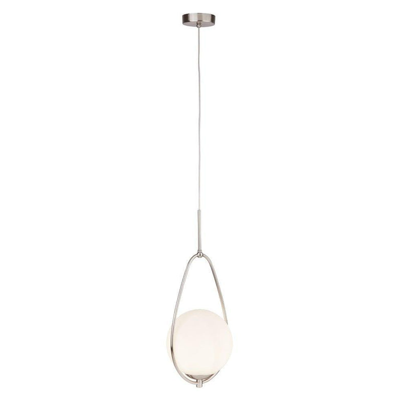 Avalon 1 Light Satin Silver Ceiling Pendant With Opal Glass Ball