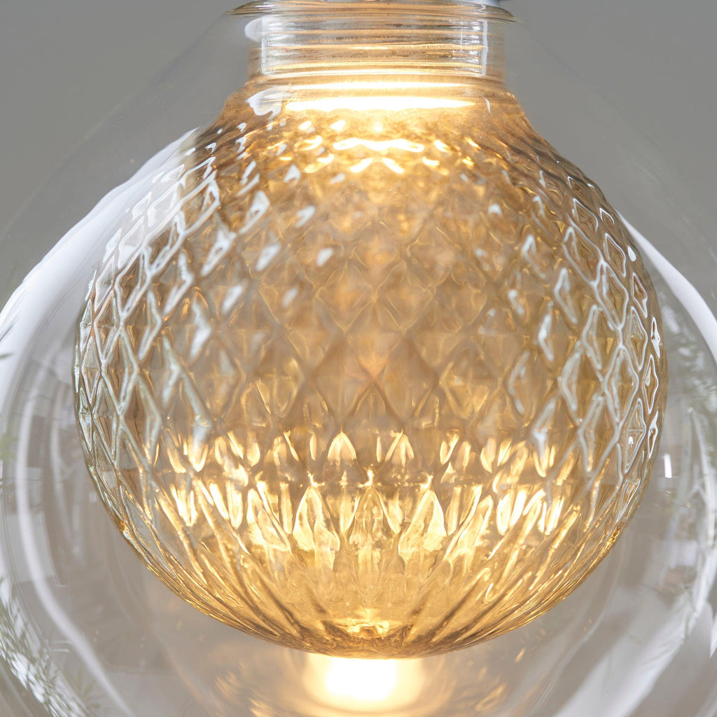 Fun contemporary lamp with clear glass outer shade and facetted tinted grey inner glass shade. An Anti-glare LED light source that is a great gift when paired with a table base; it can also be used with a flex set.