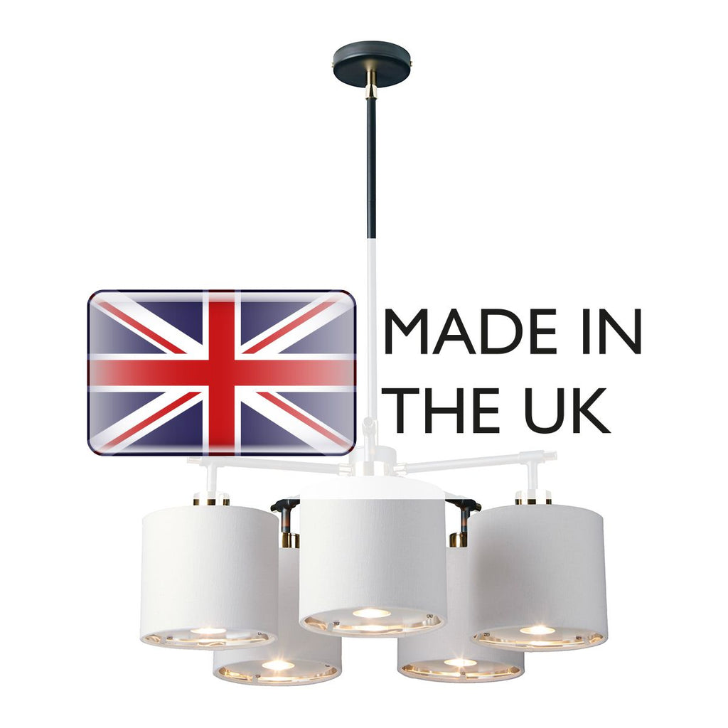 Enhance your living room or bedroom with the Balance 5 Light Black Chandelier—a striking blend of contemporary black and polished nickel accents that brings a touch of retro sophistication to any room. Designed for versatility, this chandelier seamlessly complements both modern and transitional interiors, while its compatibility with LED lamps ensures energy-efficient brilliance. Each shade features a crisp white laminate lining, enhancing light diffusion for a warm, inviting glow. The collection’s pendants, table, and floor lamps are equipped with elegant fabric diffusers, while the chandeliers and wall lights include sleek acrylic diffusers for a refined finish. Shop with confidence from the UK’s leading lighting specialists and enjoy free 90-day UK returns. Transform your home with lighting that combines style, quality, and peace of mind.| Projection | 55.2cm/21.7" |