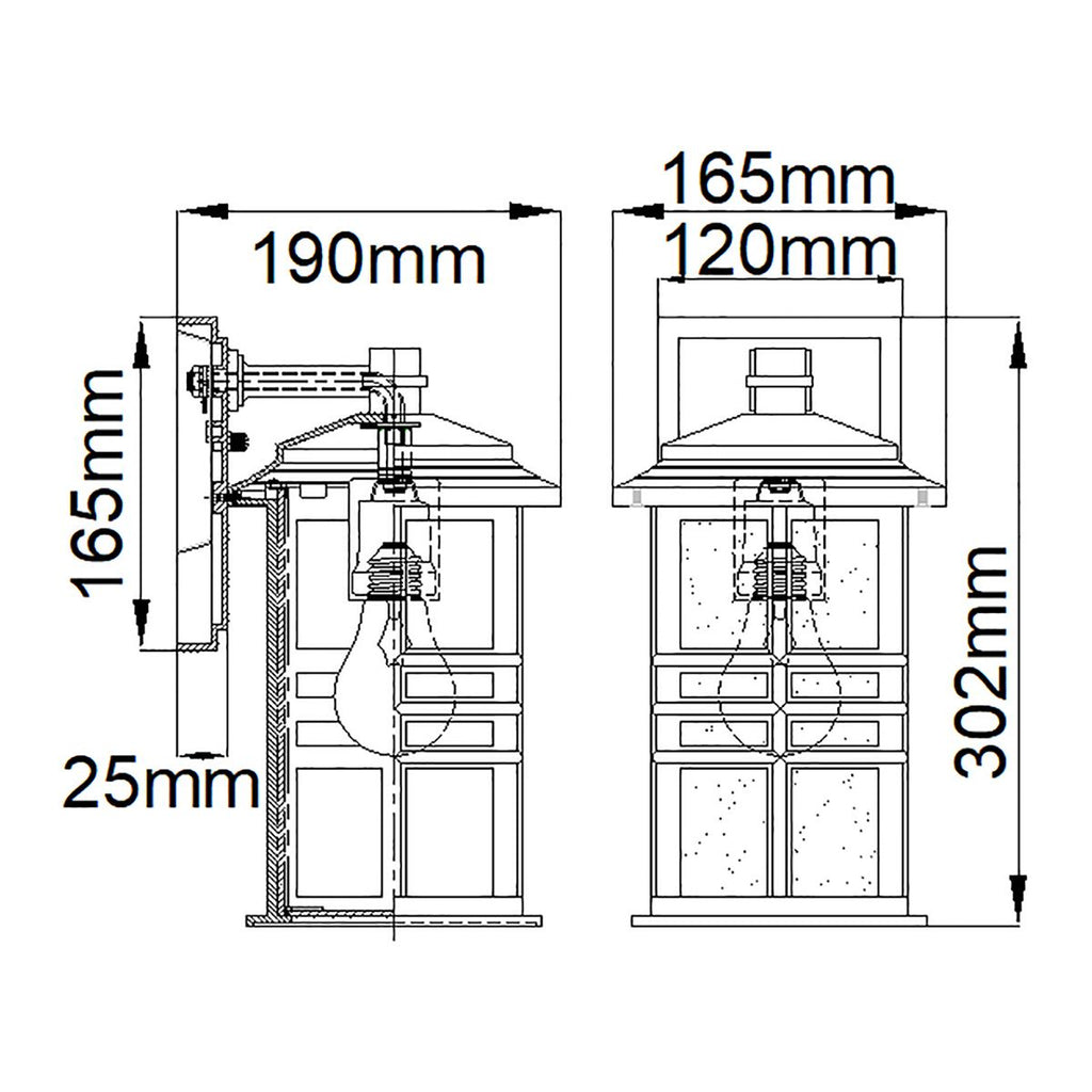 Elevate your outdoor space with the Beacon Square Bronze Outdoor Small Wall Lantern—a perfect blend of timeless design and modern durability. Inspired by classic craftsman architecture, this fixture features clean, elegant lines that complement any exterior, from traditional to contemporary. Constructed from advanced composite materials, it’s engineered to resist even the harshest outdoor conditions, including sa Lightwater spray and intense UV exposure, ensuring the Olde Bronze finish remains beautiful year after year. The clear, hammered glass mimics the gentle movement of water, adding a sophisticated touch while allowing bright, welcoming light to shine through. With an IP44 rating for reliable weather resistance, this lantern offers both style and peace of mind. Shop confidently with the UK’s leading lighting experts and enjoy free 90-day UK returns.| Projection | 19cm/7.5" |