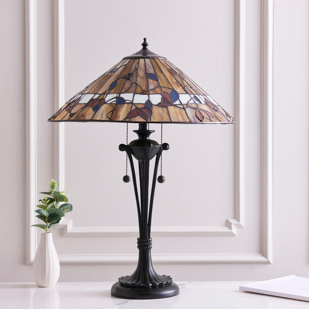 The Bernwood Tiffany Lighting range by Interiors 1900 is an eye catching blend of opalescent beige art glass and natural design that makes it stand out from other lesser ranges. This Tiffany Table Lamp is bright and stylish and will look perfect in your living room. The range also includes ceiling lights, wall lights and floor lamps.