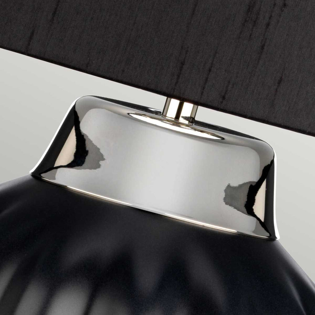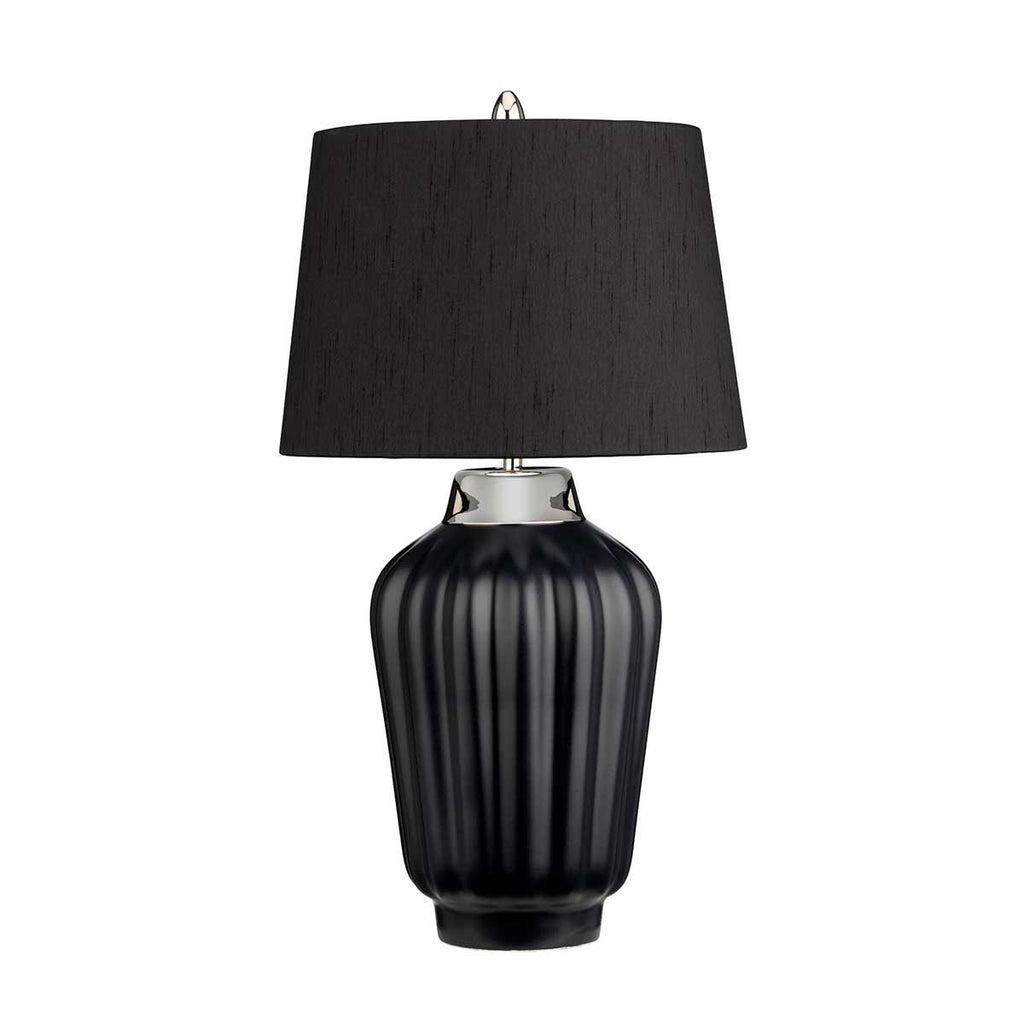 Elevate your living room or bedroom with the Bexley Black & Polished Nickel Table Lamp—a sophisticated blend of simplicity and elegance. The lamp’s polished nickel metal cap and subtle ribbed detailing add a touch of refinement, while the black faux silk tapered shade with a silver laminate lining creates a striking visual contrast and a warm, inviting glow. (Shade ref: LSUK039.) Shop with confidence from the UK’s leading lighting specialists and enjoy free 90-day UK returns.| Height | 56.2cm/22.1" |