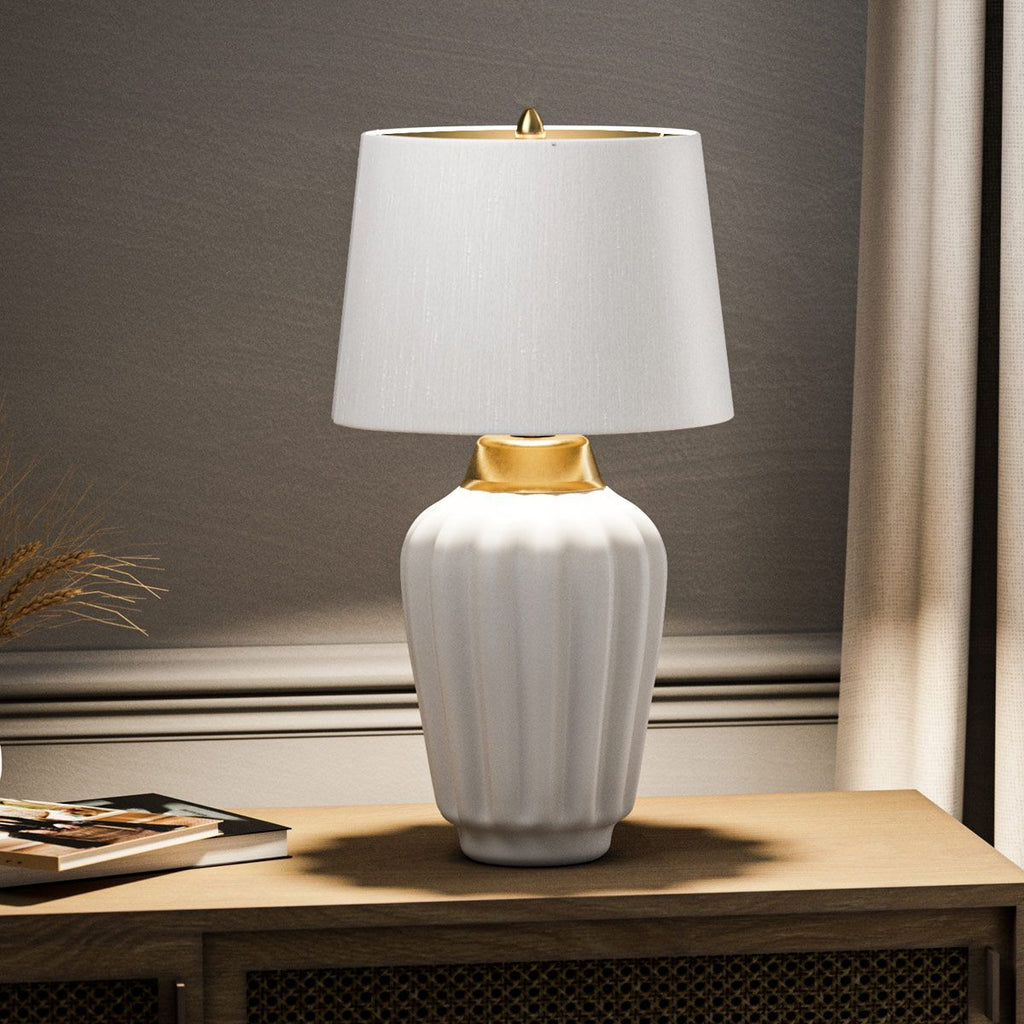 Elevate your living room or bedroom with the Bexley White & Brushed Brass Table Lamp—a sophisticated blend of simplicity and elegance. The brushed brass metal cap and subtle ribbed detailing add a touch of refined luxury, while the Light Ivory faux silk tapered shade with gold laminate lining creates a warm, inviting glow. (Shade reference: LSUK038.) Shop with confidence from the UK’s leading lighting experts and enjoy free 90-day UK returns.| Height | 56.2cm/22.1" |